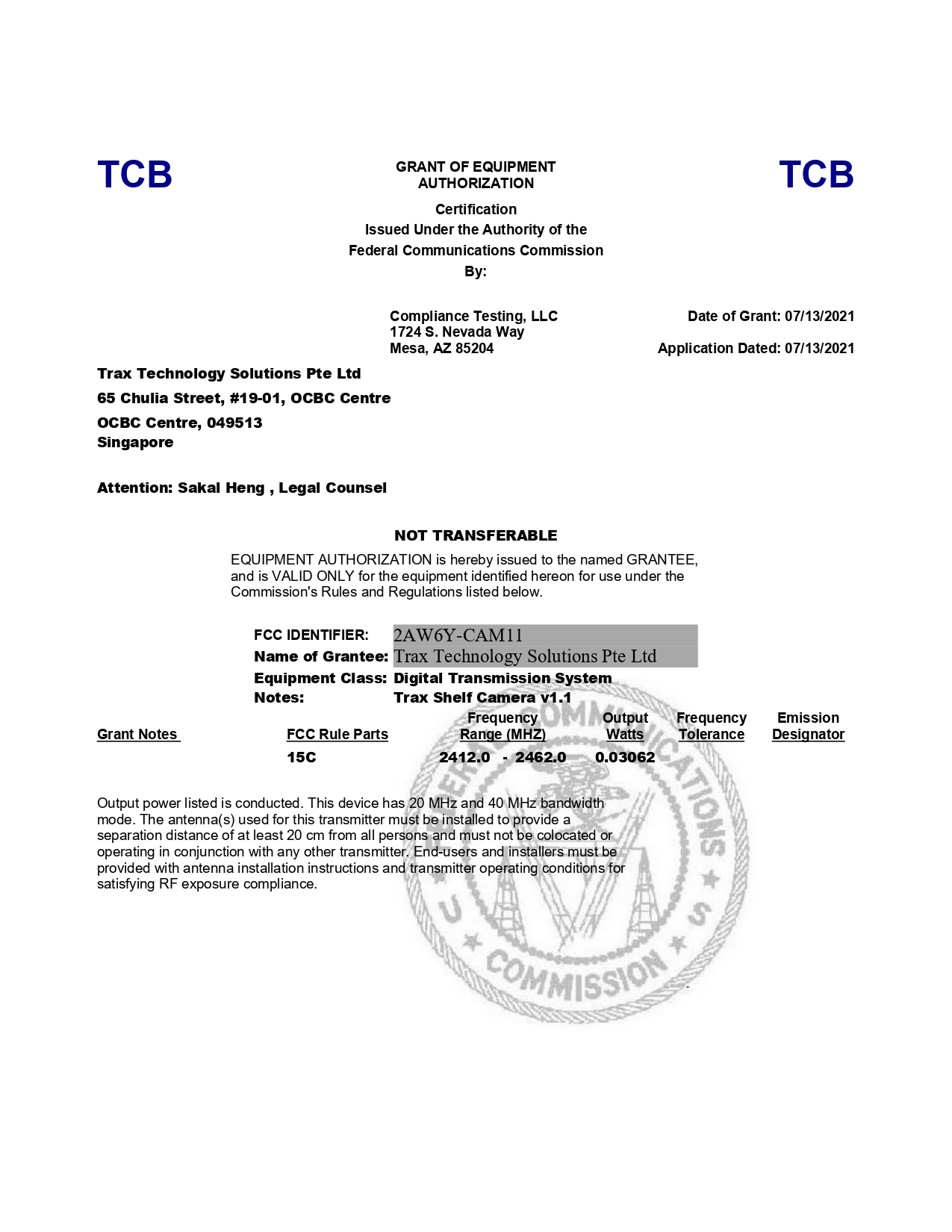 Nro. FCC/ID: