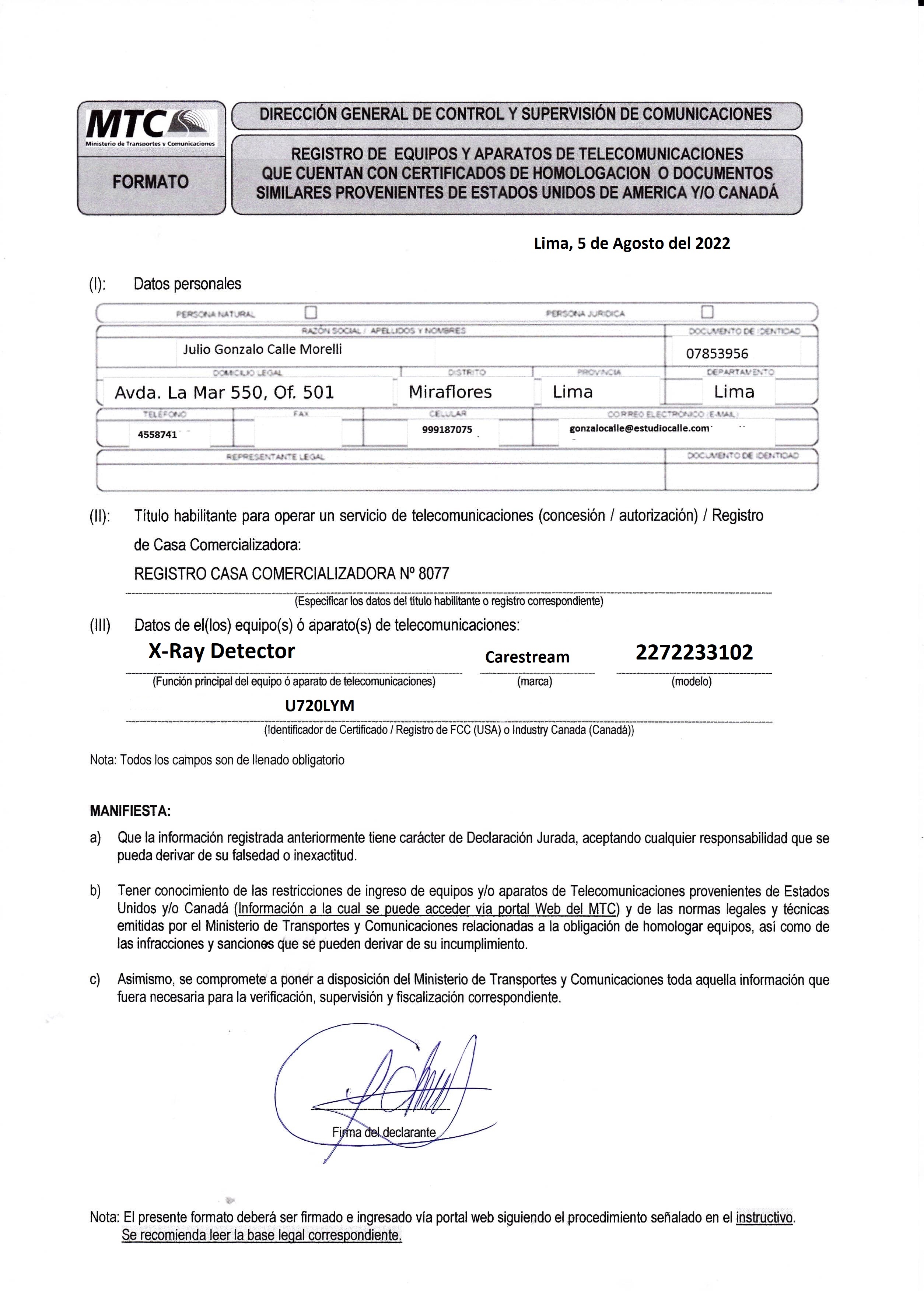 Nro. FCC/ID: