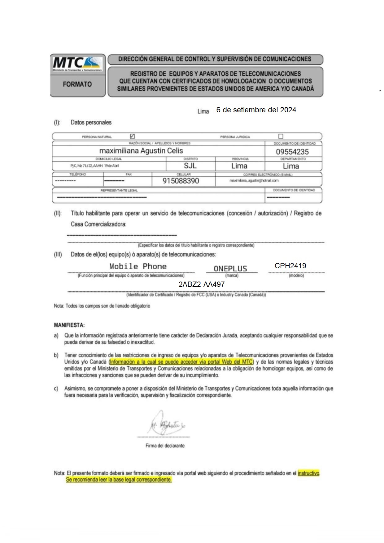 Nro. FCC/ID:
